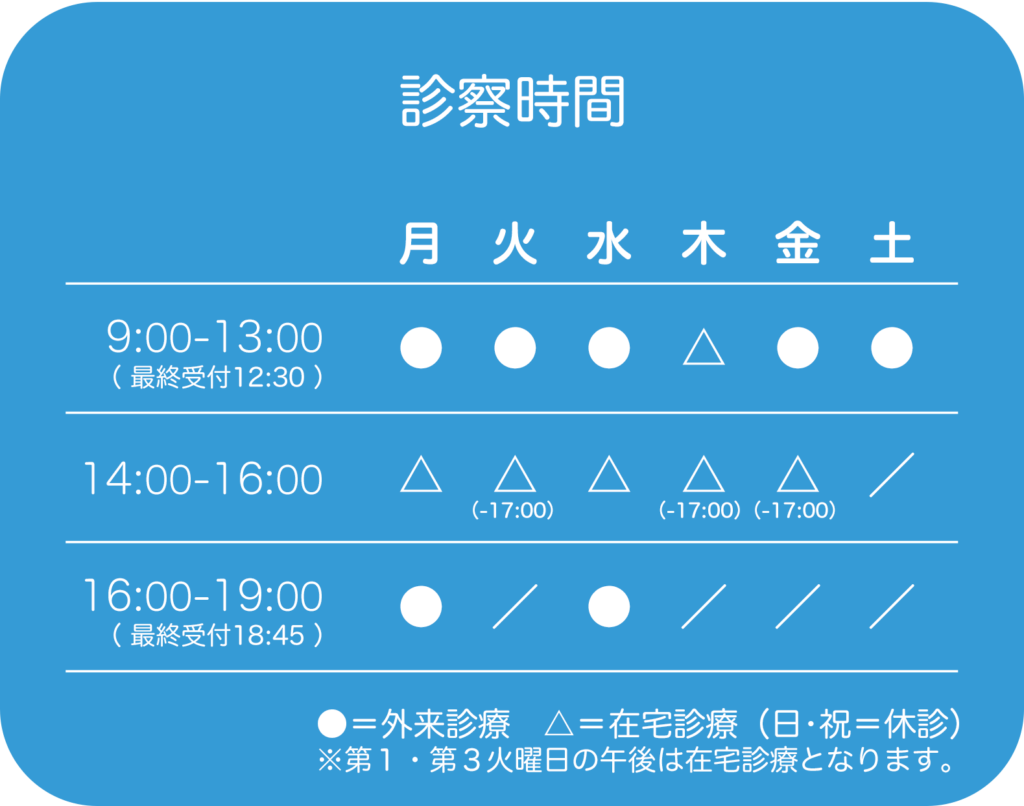 クリニックまでの通院が難しい場合には、ご自宅を訪問して診療を行います。